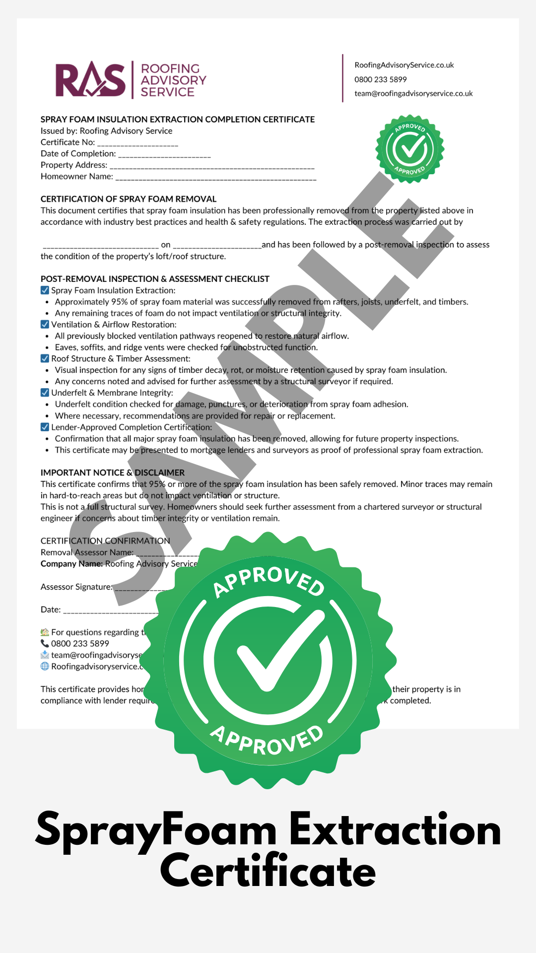 A: Roofing Advisory Service is not a contractor or removal company—we are an independent advisory organisation. Our goal is to provide impartial guidance, connect homeowners with trusted removal specialists, and help them navigate challenges like mortgage issues or mis-sold spray foam finance agreements. We succeed when homeowners regain control of their properties, not when insulation is sold.
